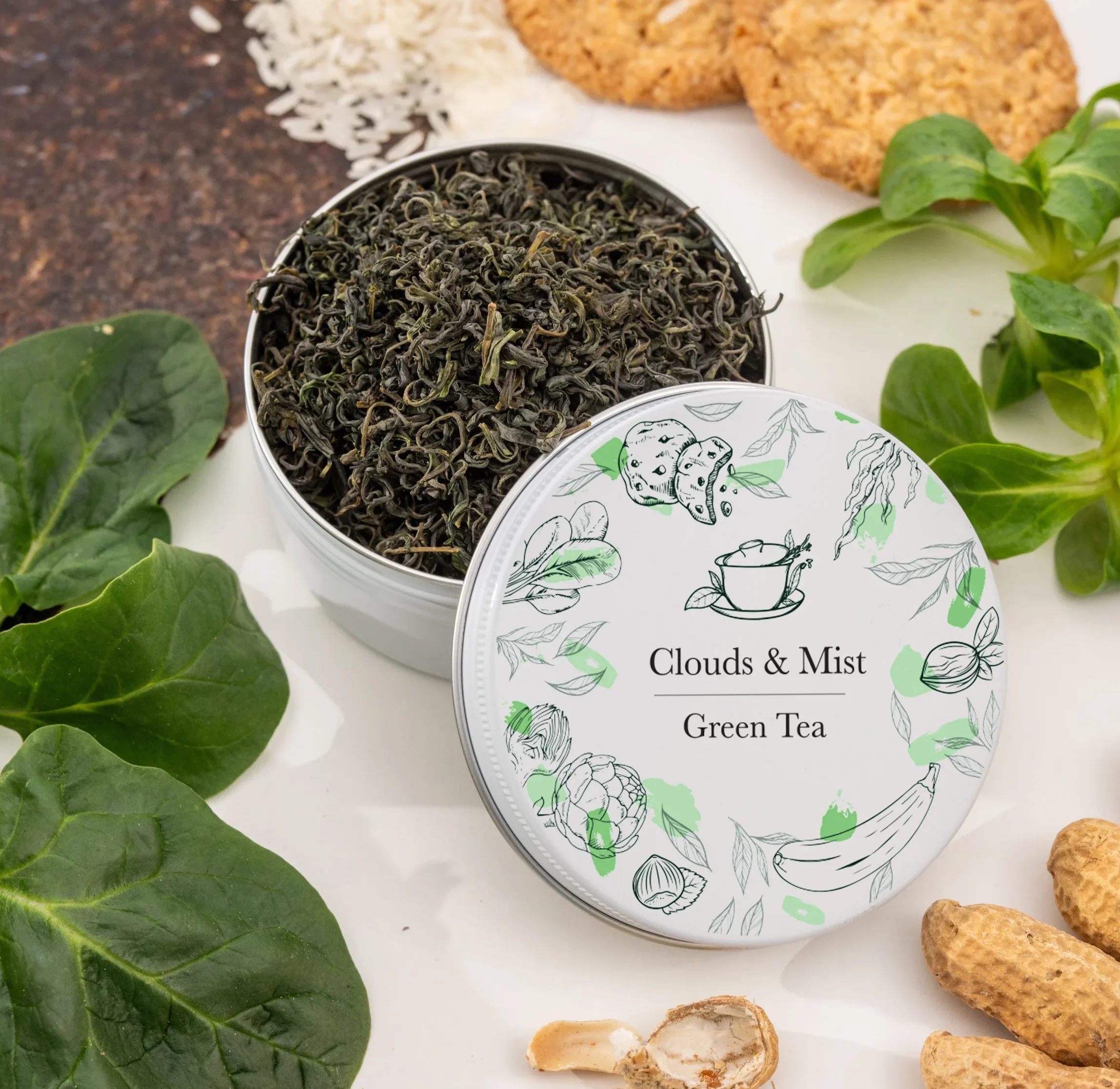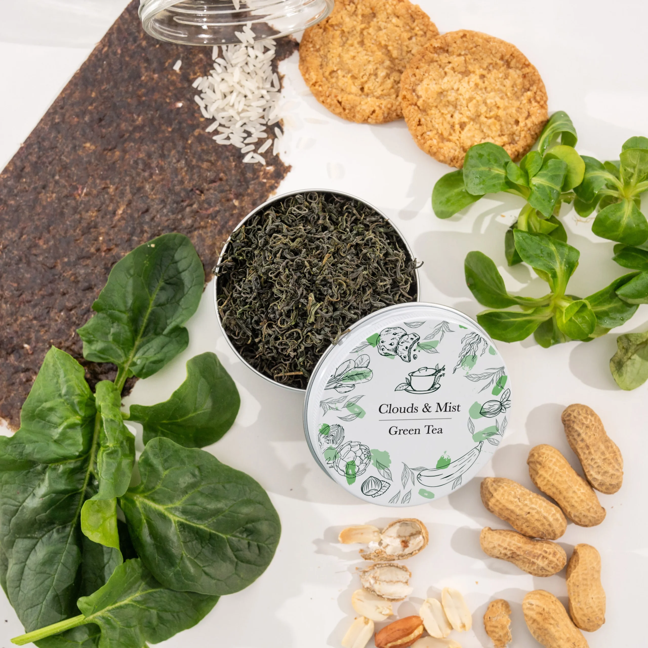 Clouds & Mist, znana w Chinach jako Yun Wu (云雾 – „chmury i mgła”), to wysokogórska zielona herbata z prowincji Fujian, zbierana w mglistych górach regionu Zhenghe. Powstaje z lokalnego kultywaru Qun Ti Zhong, który słynie z intensywnej zieleni liści i bogatego aromatu. Herbata łączy świeżość górskiego terroir z kremową strukturą naparu i subtelną, naturalną słodyczą.